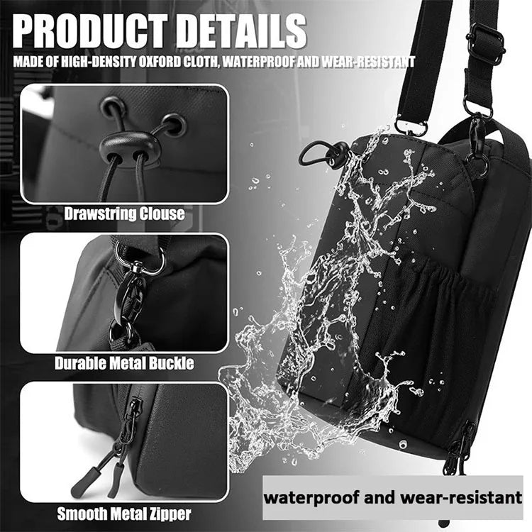 Built to withstand active lifestyles, the bag is made from rugged 900D Oxford fabric with leather film, making it both waterproof and wear-resistant. Whether you’re running in the rain or hitting the gym, your items stay protected.